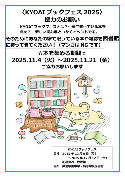 12月8日(月)〜12日(金)に共愛学園中学高校図書館にて、初のブックフェス2025を開催しました。