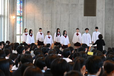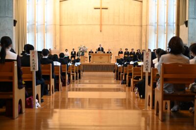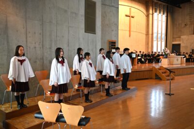 式中は、多くの新入生が礼拝というものに慣れていないこともあり、緊張した様子でした。